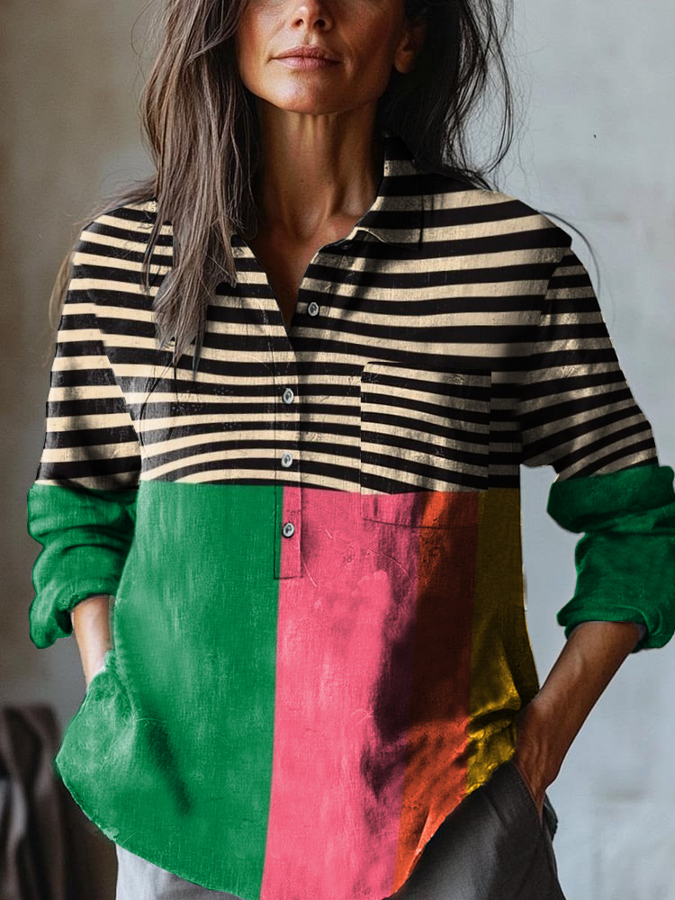 Women's Geometric Abstract Art Print Casual Cotton and Linen Shirt