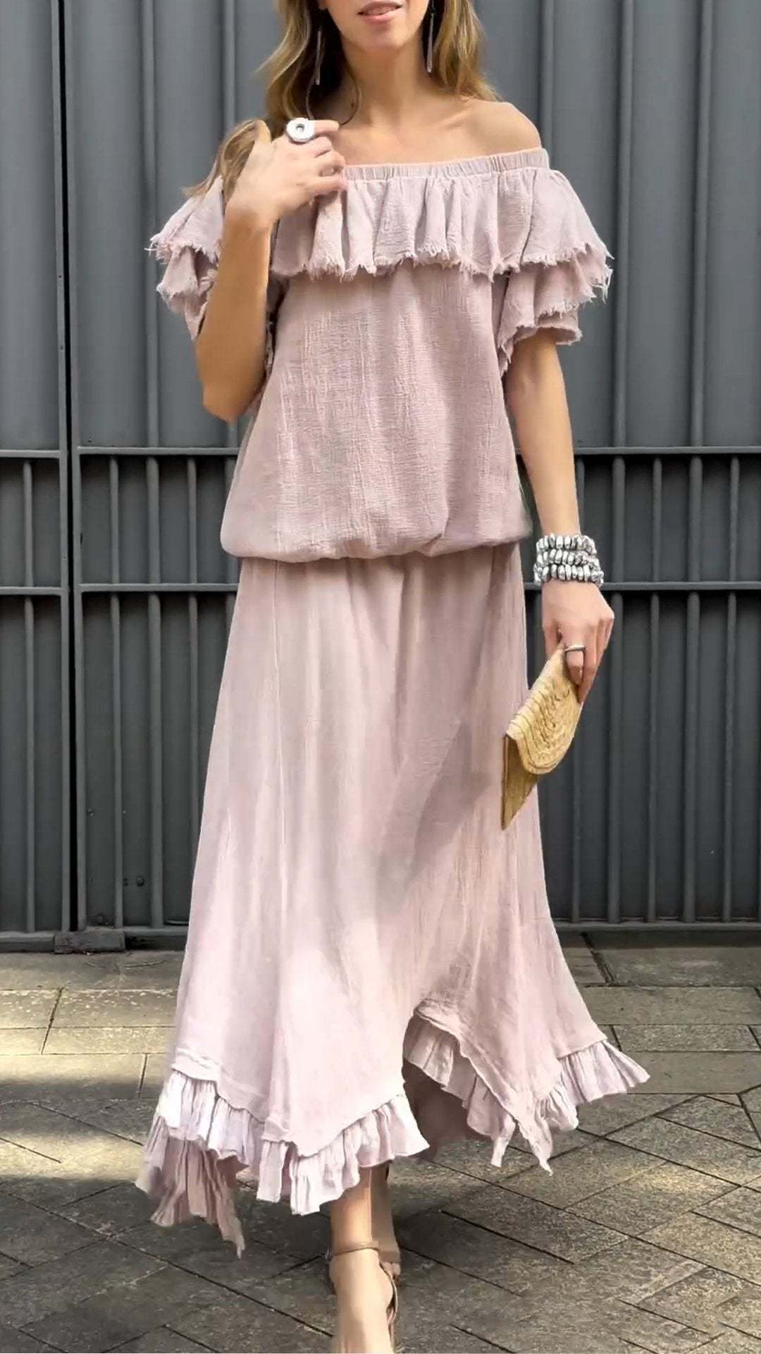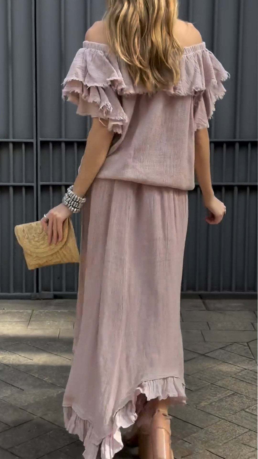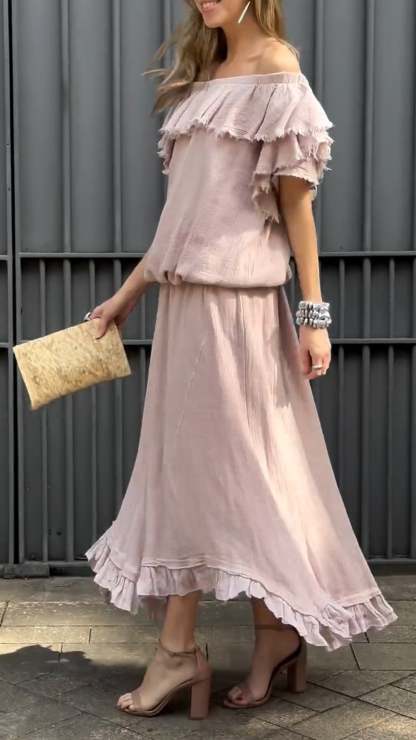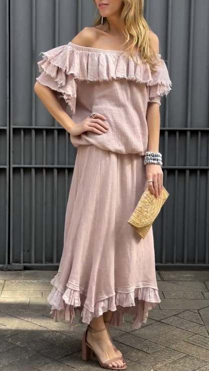 Women's One-shoulder Ruffled Design Casual Cotton and Linen Suit