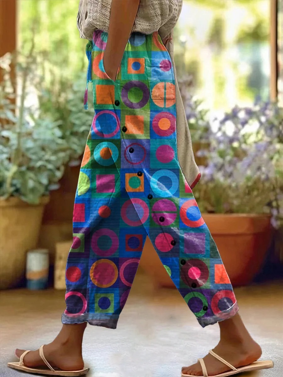 Women's Retro Abstraction Art Print Casual Cotton Linen Shirt