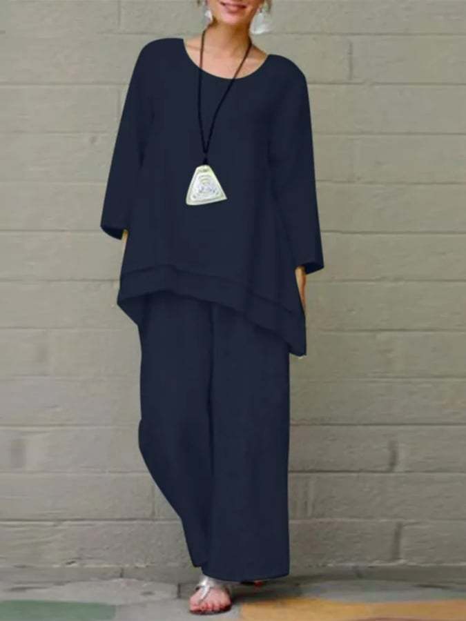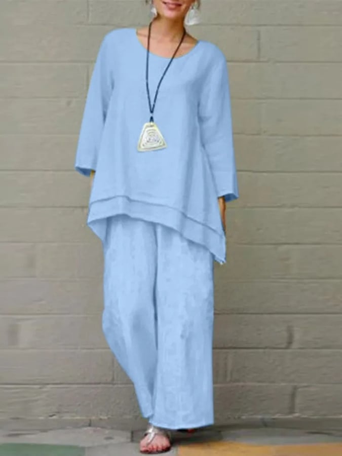 Women'S Solid Color Cotton And Linen Two-Piece Set