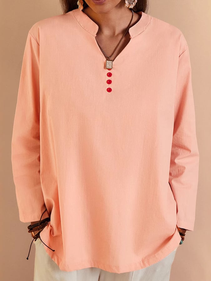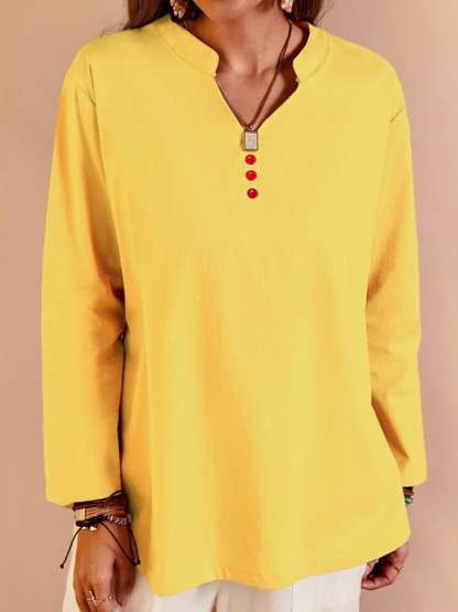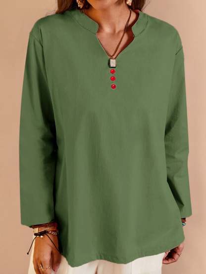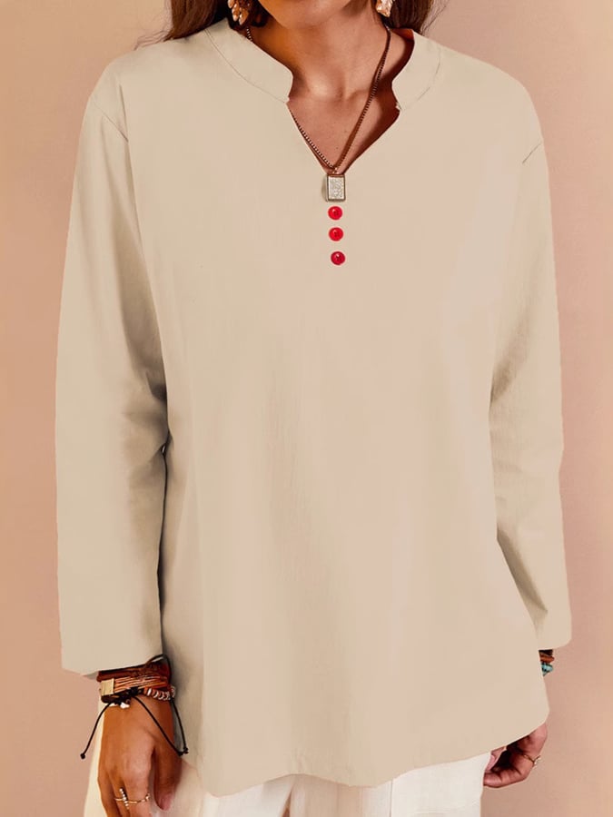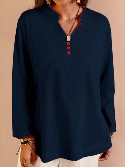 Women's V-Neck Long Sleeve Loose Button Design Casual Shirt