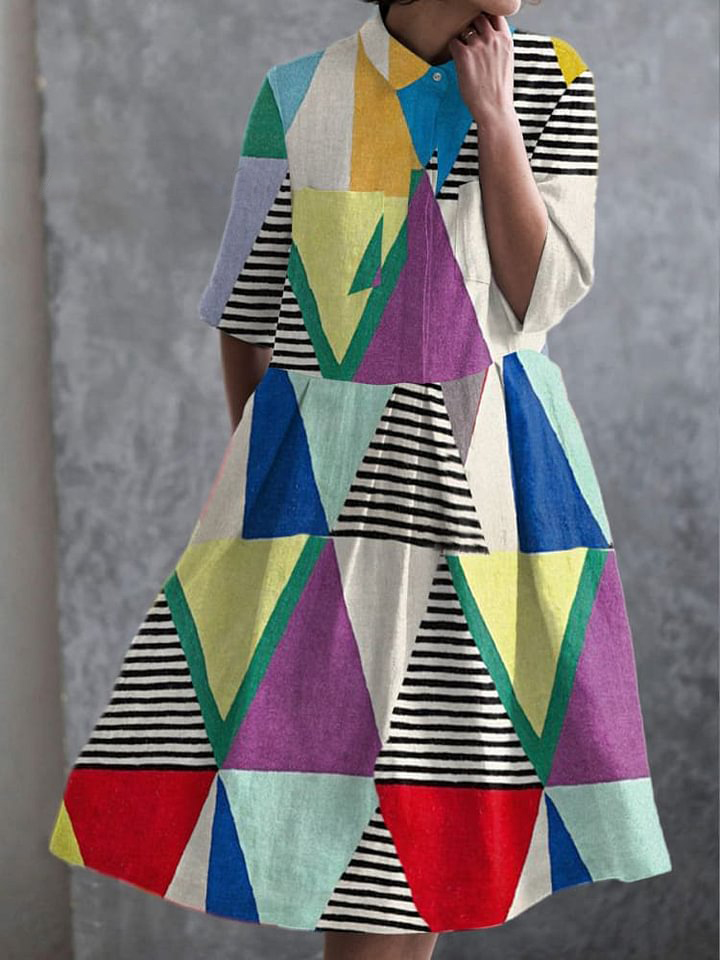 Women's Vintage Abstract Geometry Print Pocket Cotton Dress