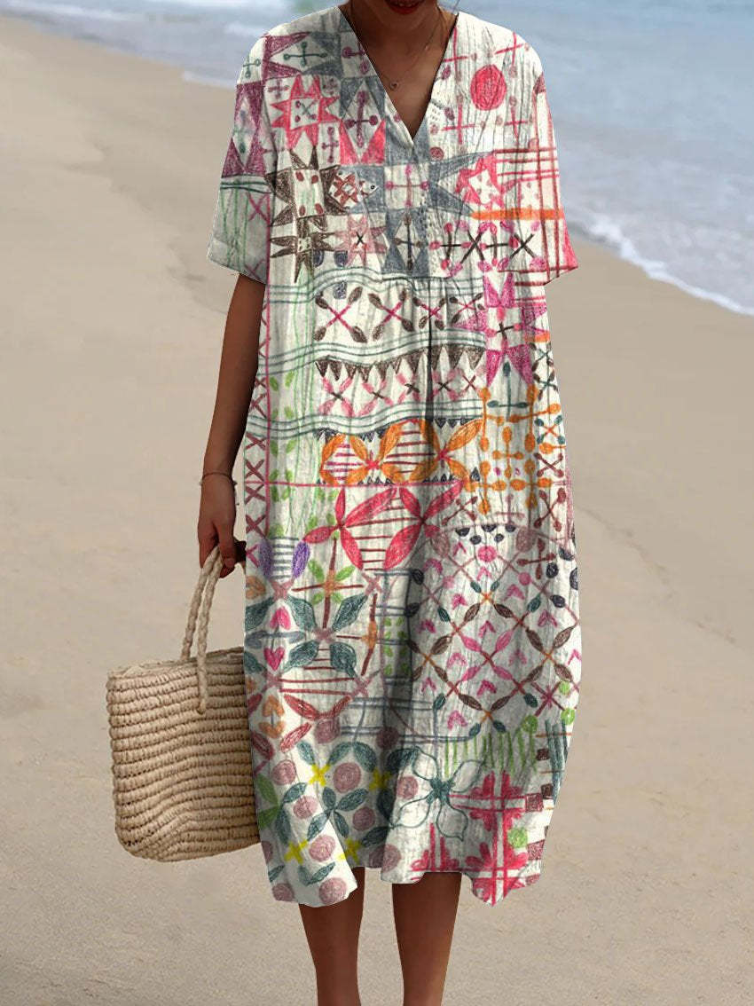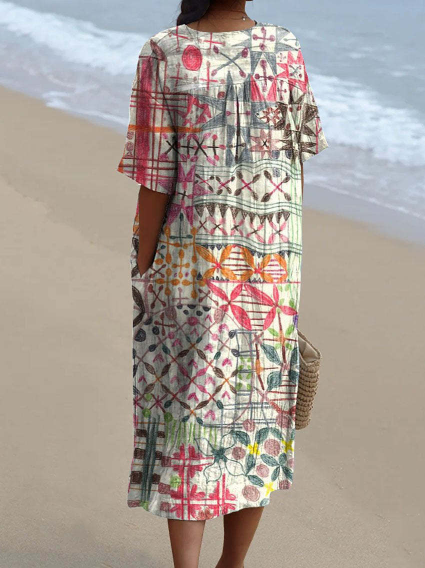 Women's Vintage Abstract Painting Art Print Flowy Dress