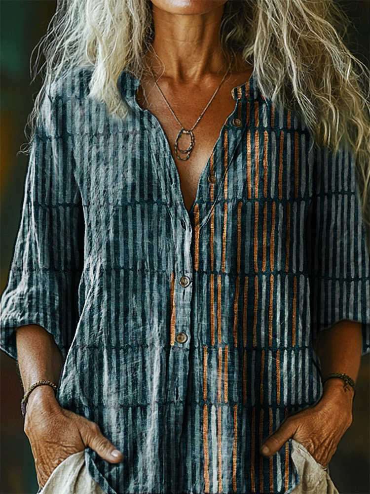 Women's Vintage Bohemian Floral Art Print Casual Cotton Linen Shirt