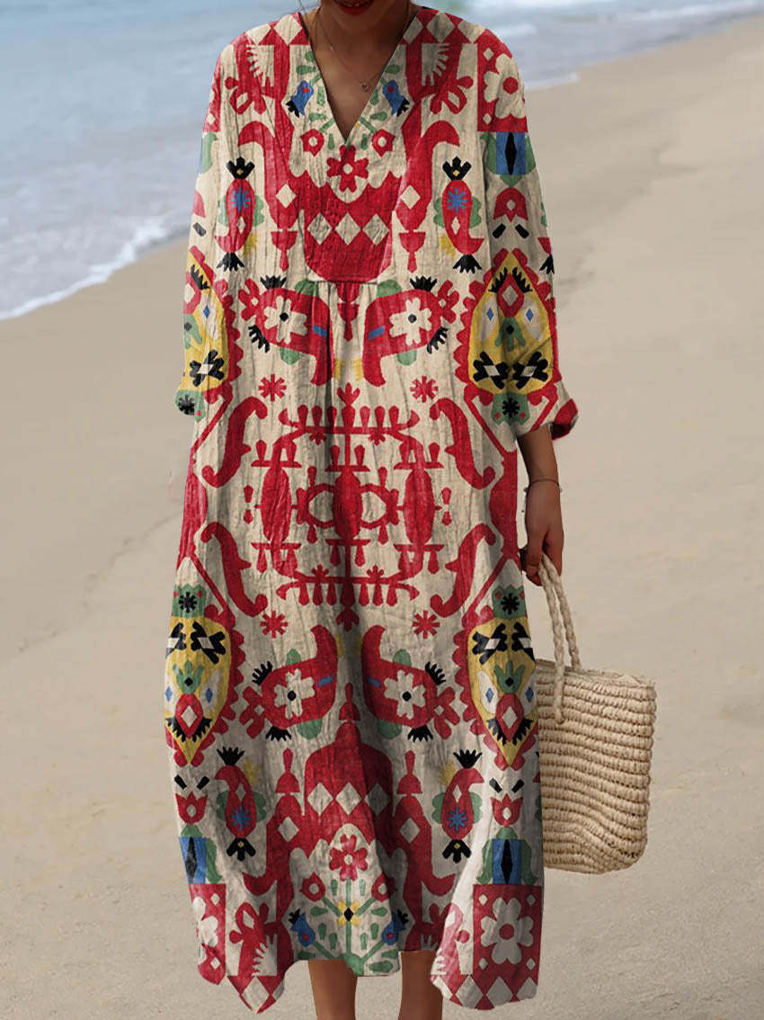 Women's Vintage Ethnic Pattern Art Print Cotton Dress