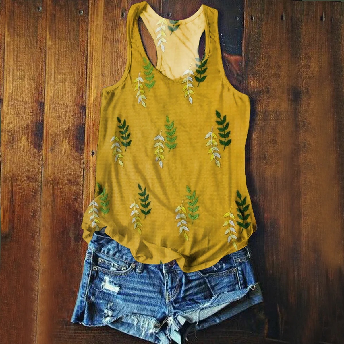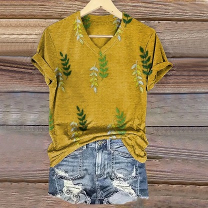 Women's Vintage Leaf Art Print Casual Cotton Linen Shirt
