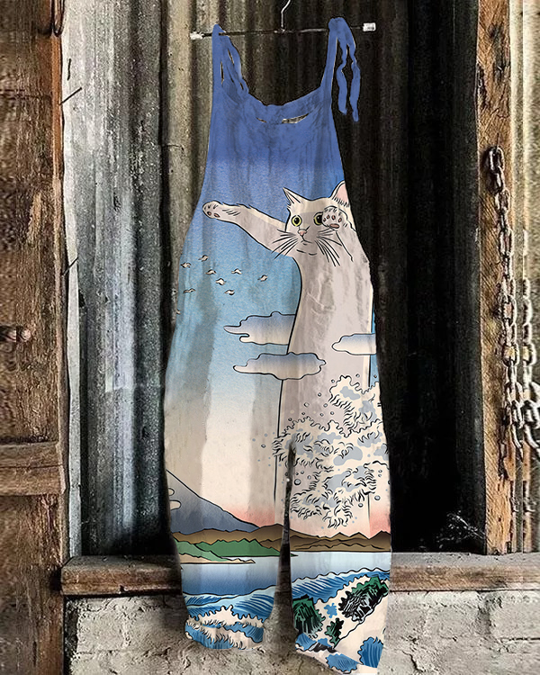 Japanese Cat Landscape Art Print Jumpsuit