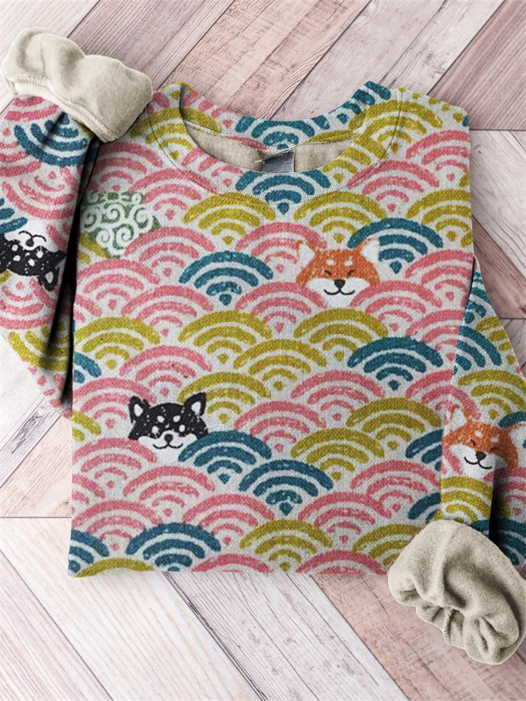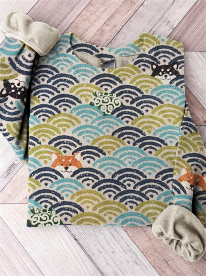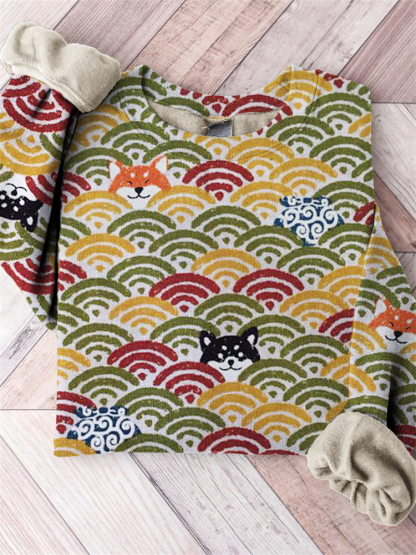 Shiba Inu Dogs Japanese Wave Pattern Comfy Sweatshirt