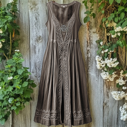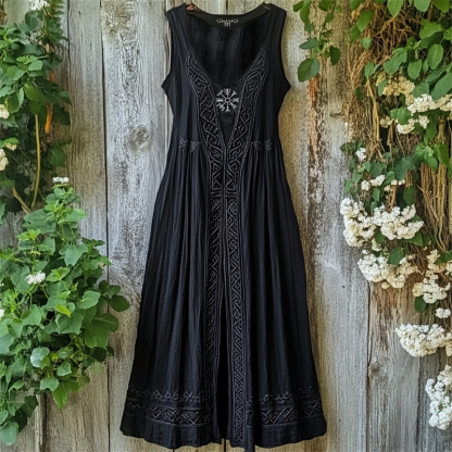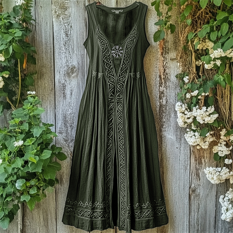 Viking Vegvisir Embroidered Celtic Knot Linen Tank Dress