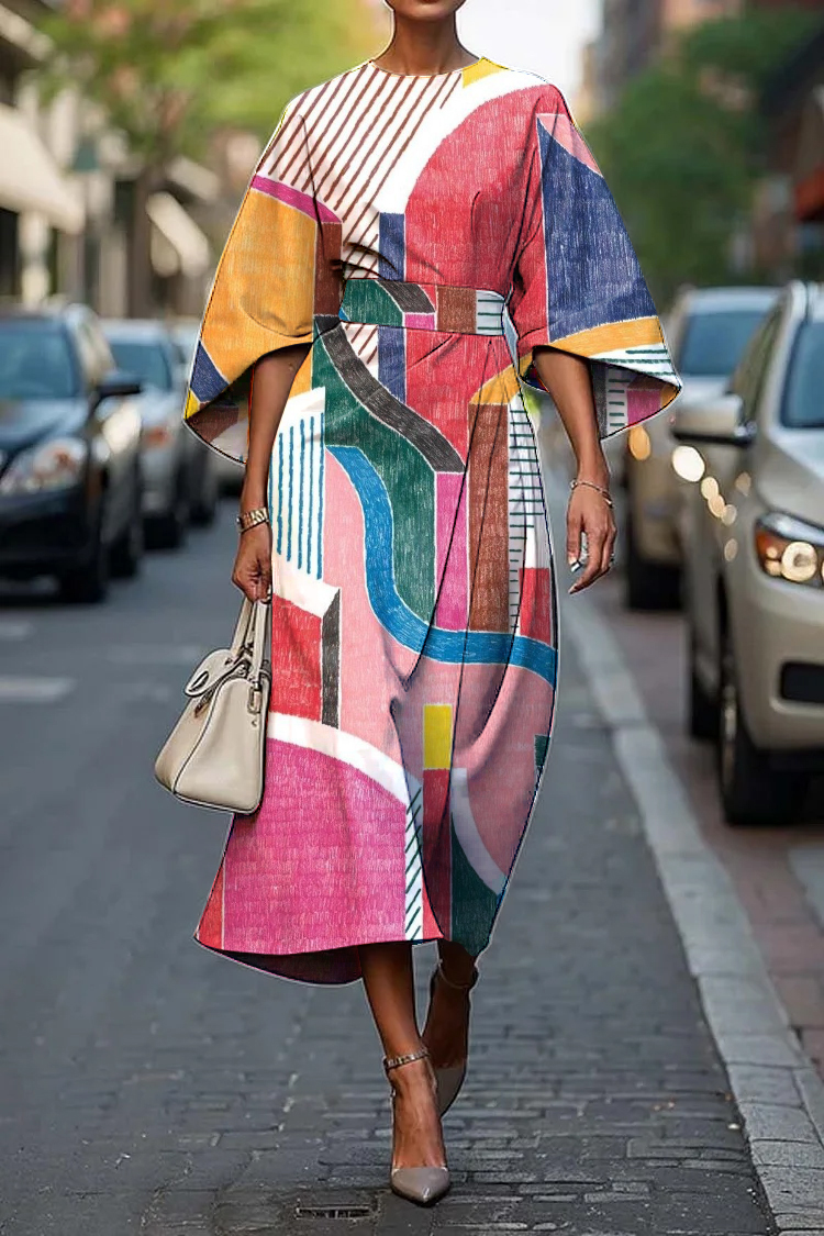 Women's Elegant Abstract Art Print Midi Dress