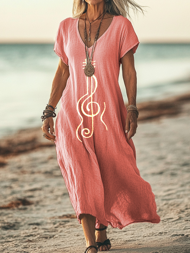 Women's Hippie Violine Art Print Pocket Cotton Dress