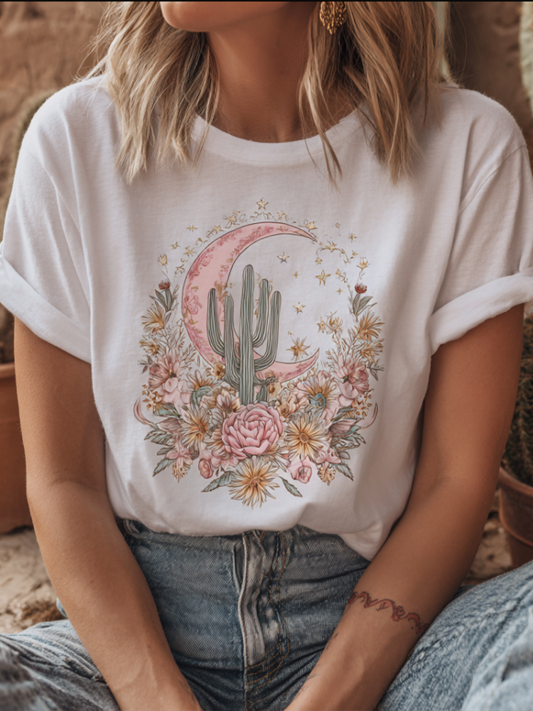 Women's Breast Cancer Health Plant Flower Bohemian Style Printed T-shirt