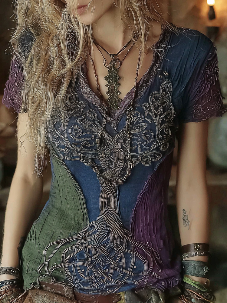 Women's Viking Tree Of Life Art Graphic V-neck T-shirt