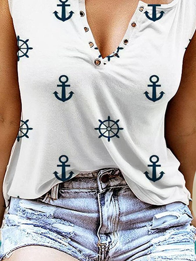Anchor Print V-Neck Tank Top