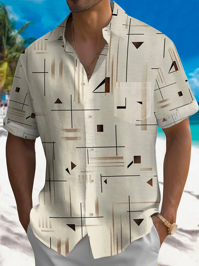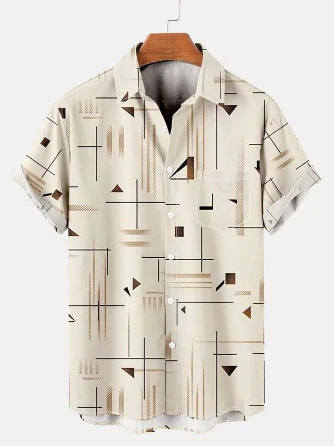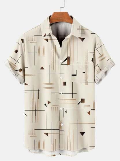Leisure Holiday Geometric Print Men'S Short-Sleeved Shirt