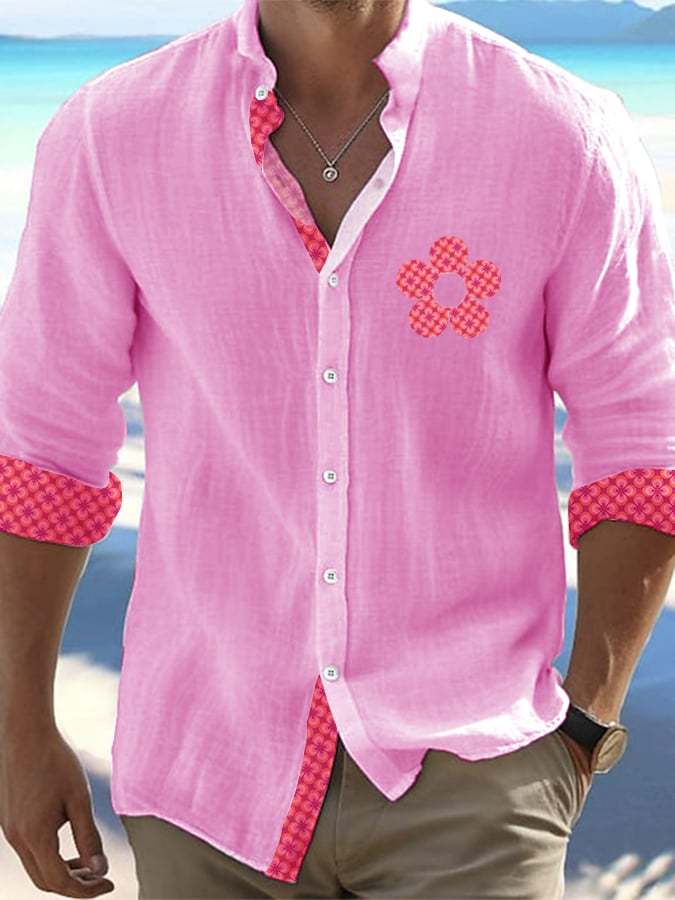 Men's Fashion Barbie Pink Simple Vacation Casual Shirt