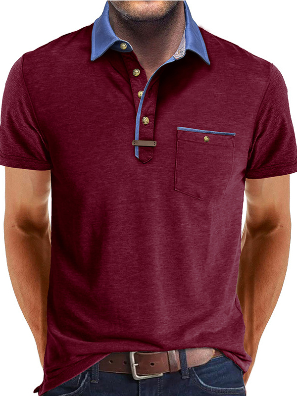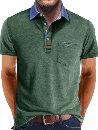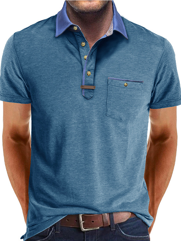 Men's Fashion Lapel Splicing Short-sleeved Lapel Pocket Polo Shirt