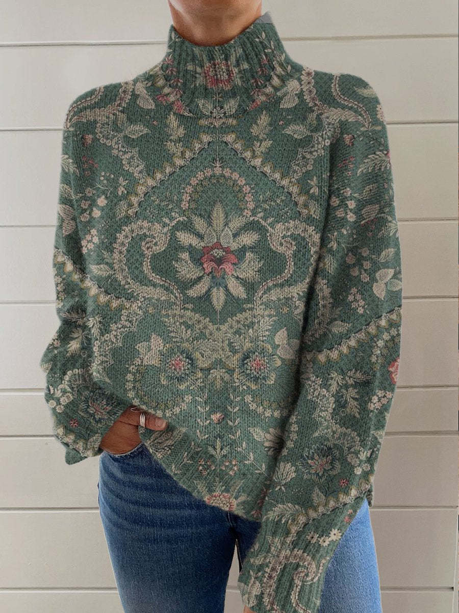 Retro Ethnic Pattern Art Print Knit Turtleneck Pullover Sweater