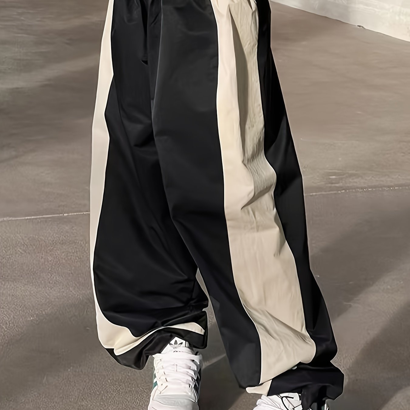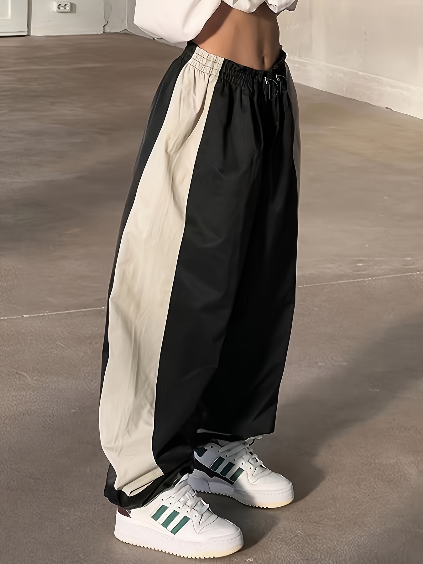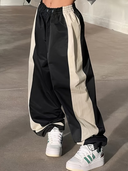 Wide Leg Patchwork Color Block Pants, Casual Loose Drawstring Waist For Spring & Summer, Women's Clothing