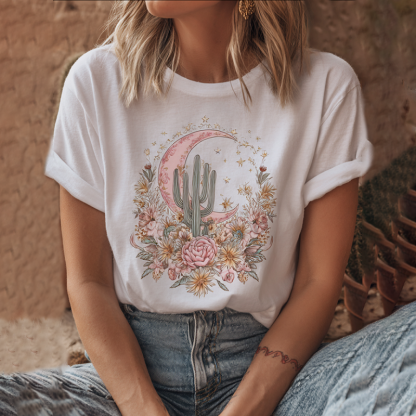 Women's Breast Cancer Health Plant Flower Bohemian Style Printed T-shirt