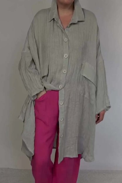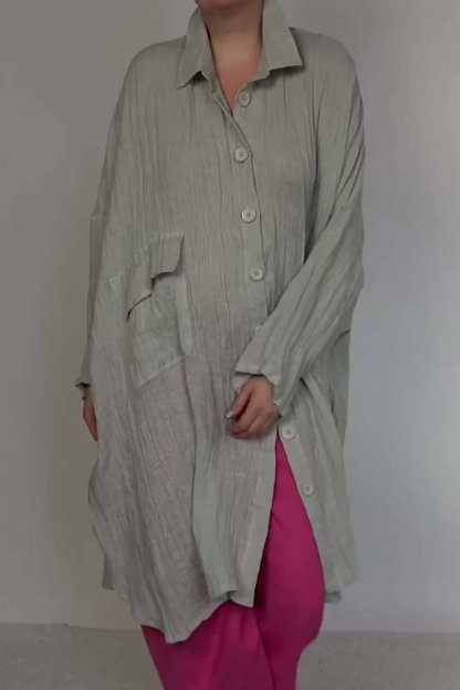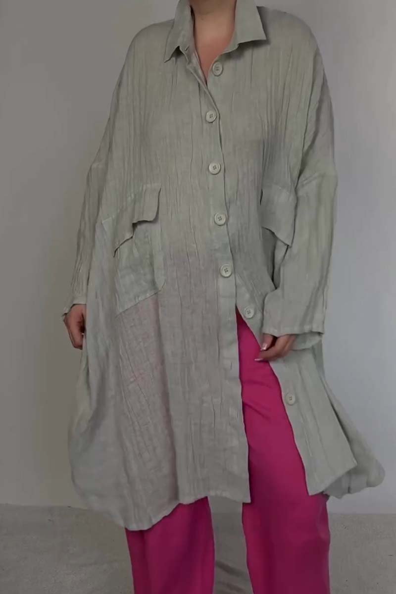 Women's casual solid color loose cotton and linen long shirt