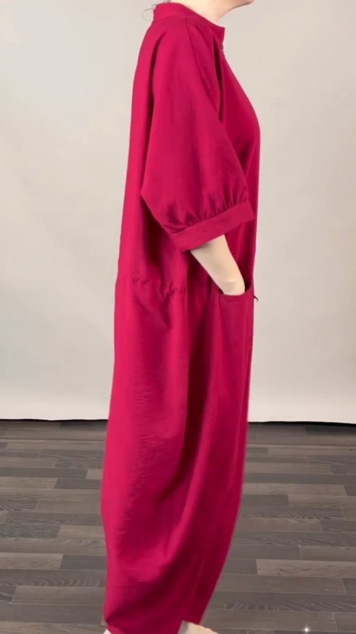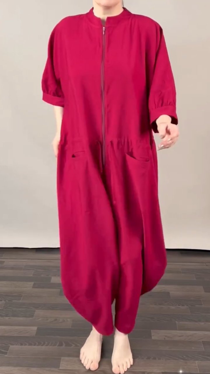 Women's Mid-long Sleeve Zipper Design Jumpsuit