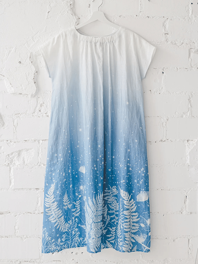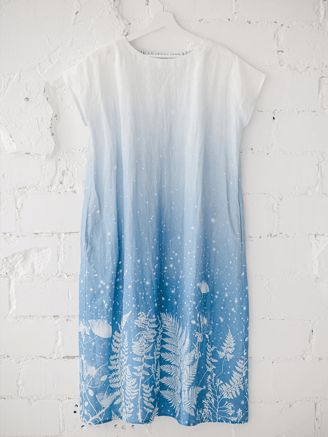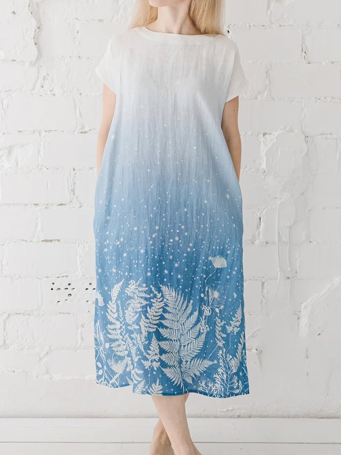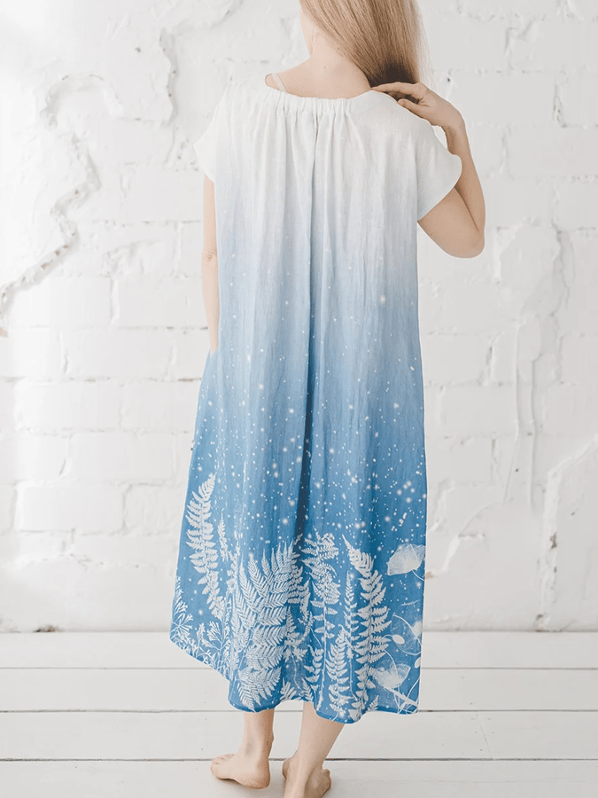 Women's Ombre Grass Print Linen Short Sleeve Dress
