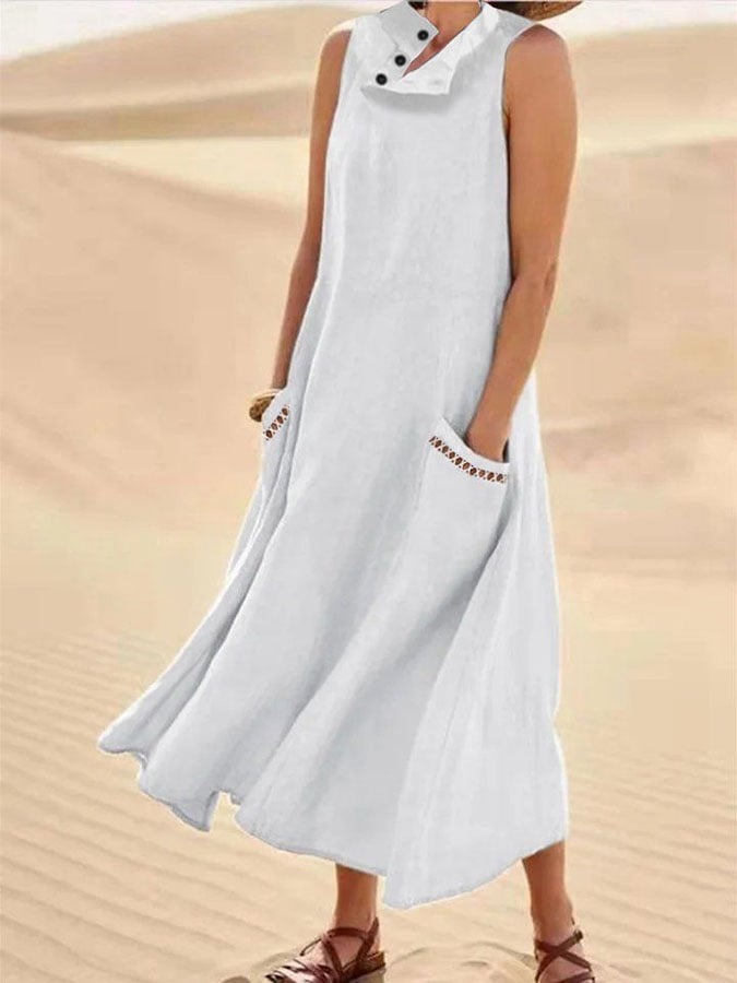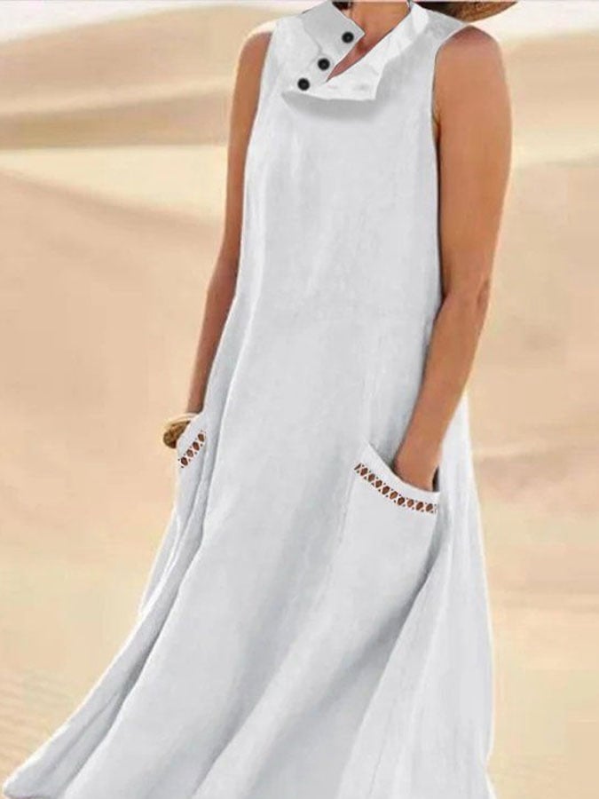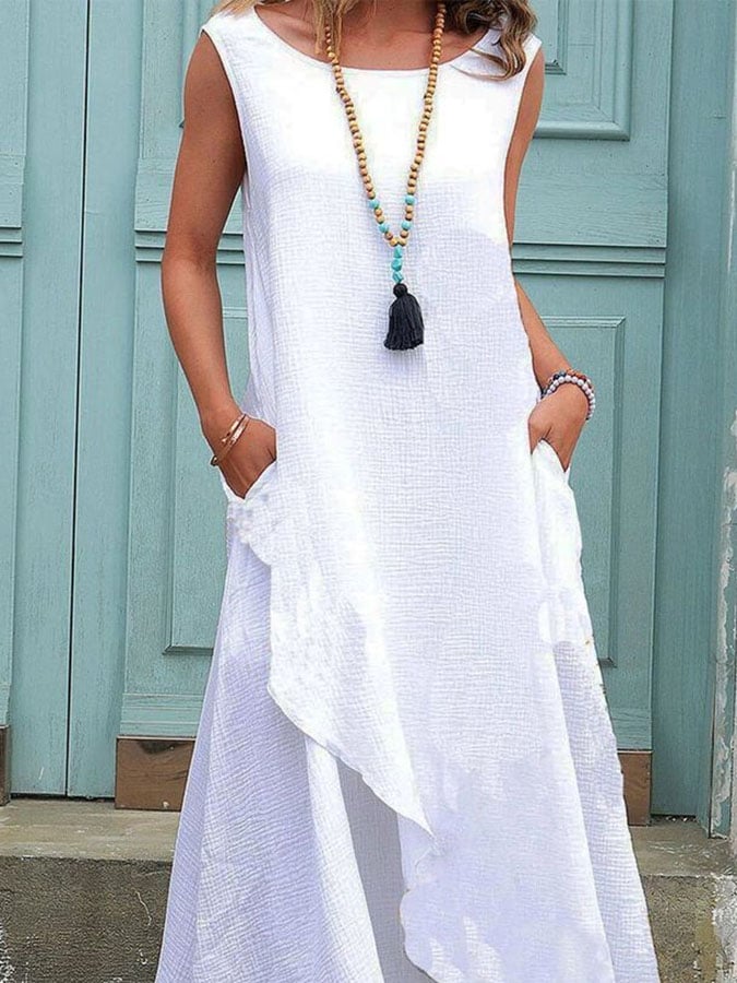 Women's Casual Solid Color Round Neck Pocket Vest Dress