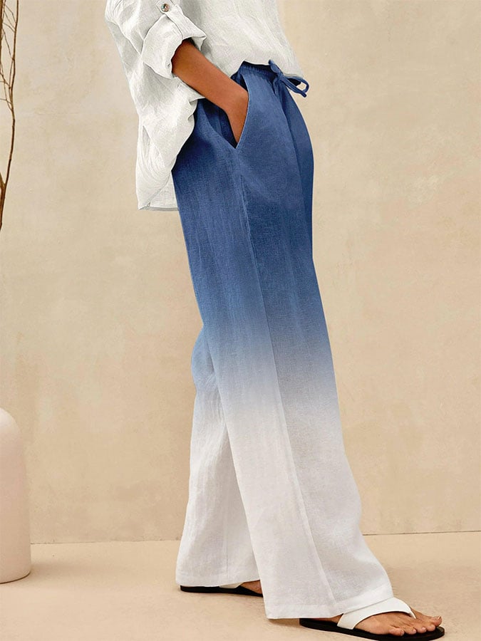Ladies Pocket Patchwork Loose Cotton And Linen Casual Pants