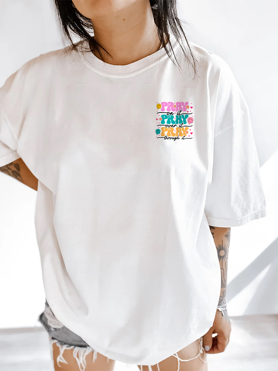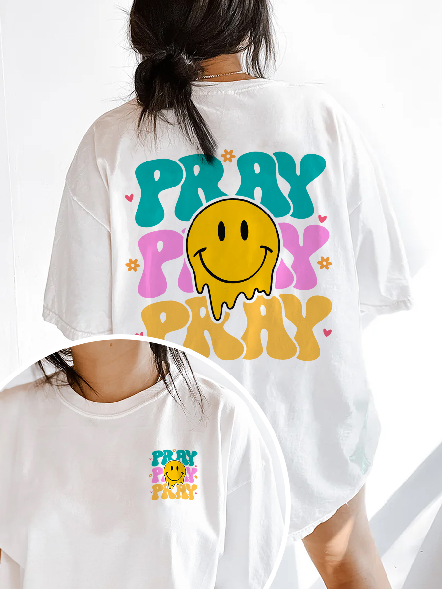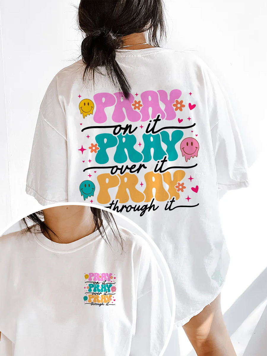 Pray On It Over It Through It Smile Face T-Shirt