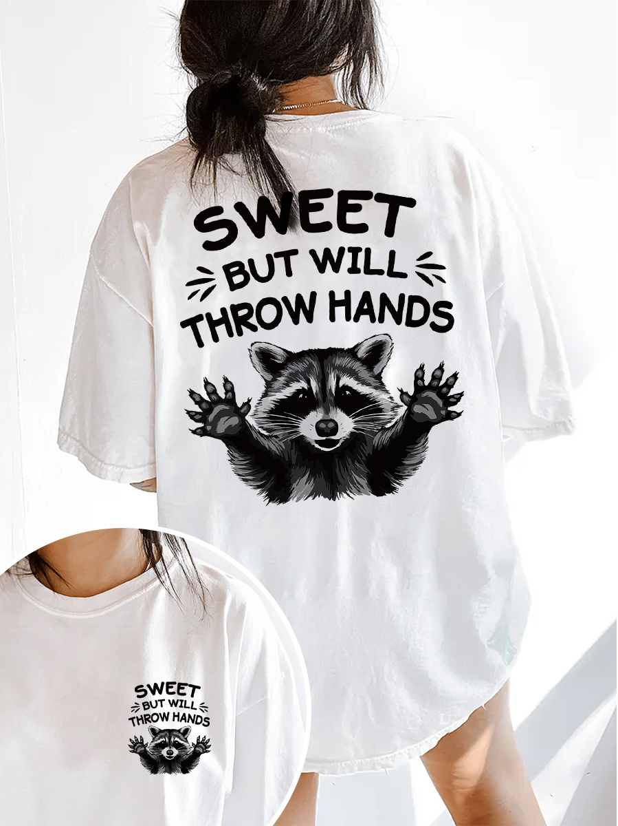 Sweet But Will Throw Hands Raccoon T-Shirt