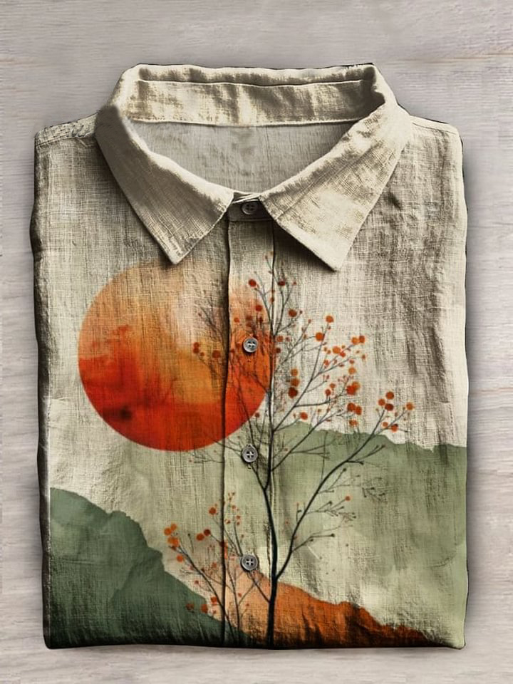 Art Print Casual Long Sleeves Cotton Shirt