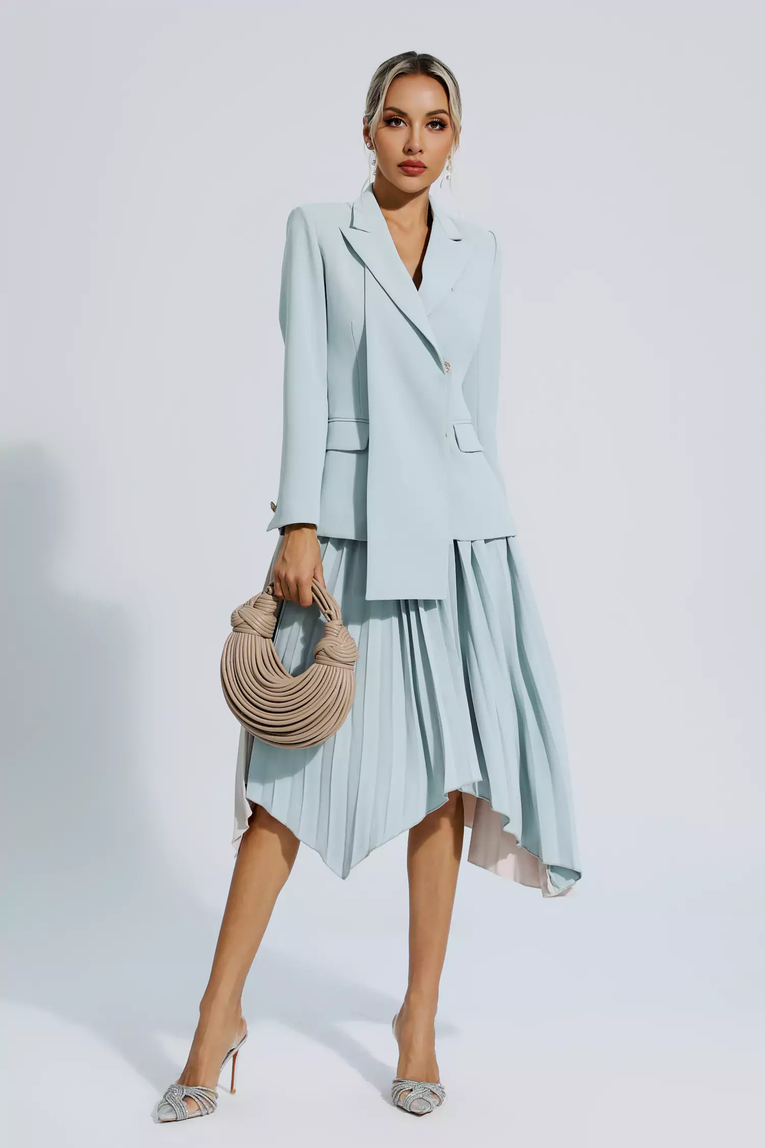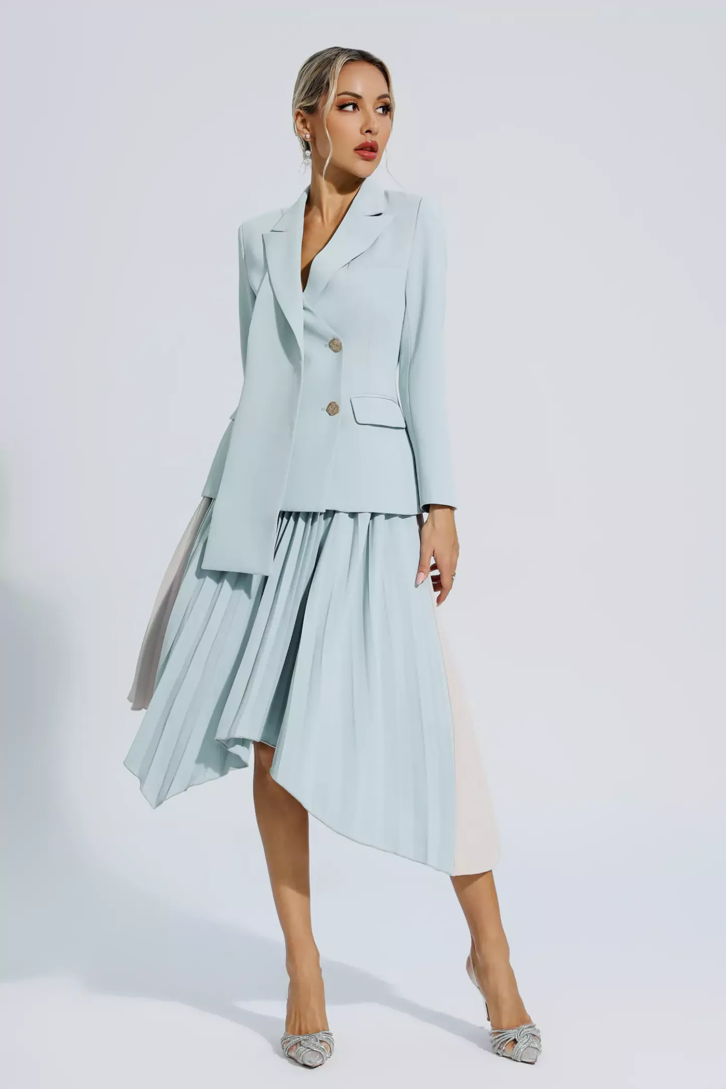 Make a bold style statement with our Gray Ruched Blazer Set. With its long sleeves and irregular pleated skirt, it's no wonder this outfit is the epitome of spring and autumn fashion. Elevate your wardrobe and showcase your unique style with this must-have suit.