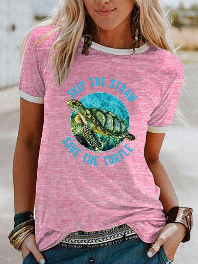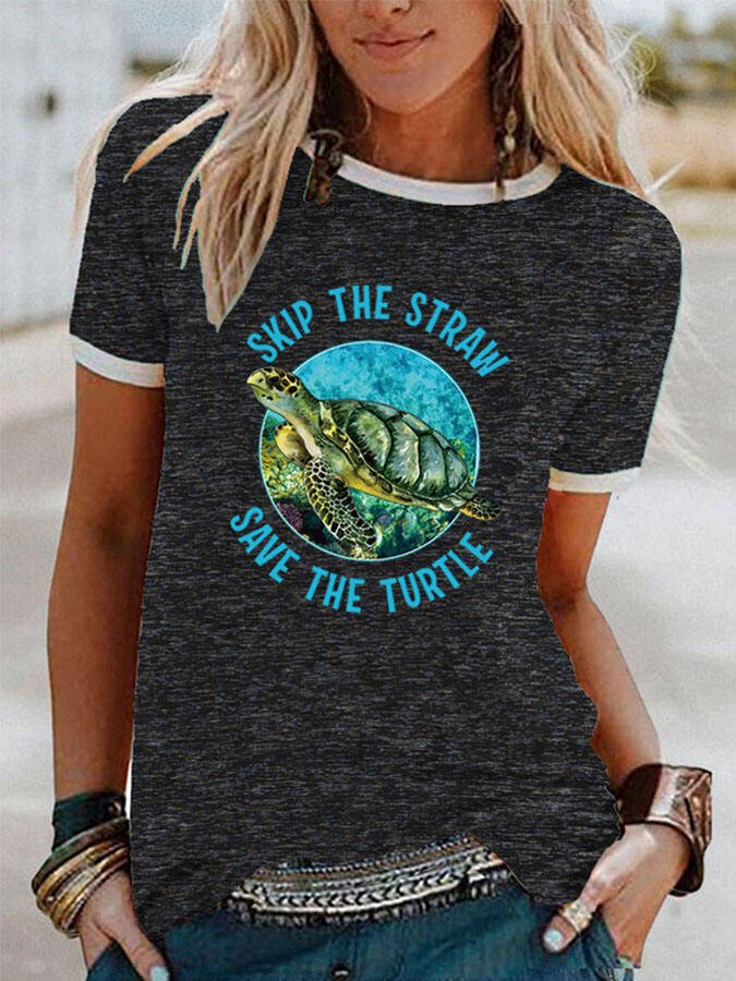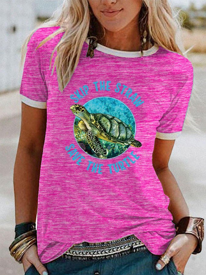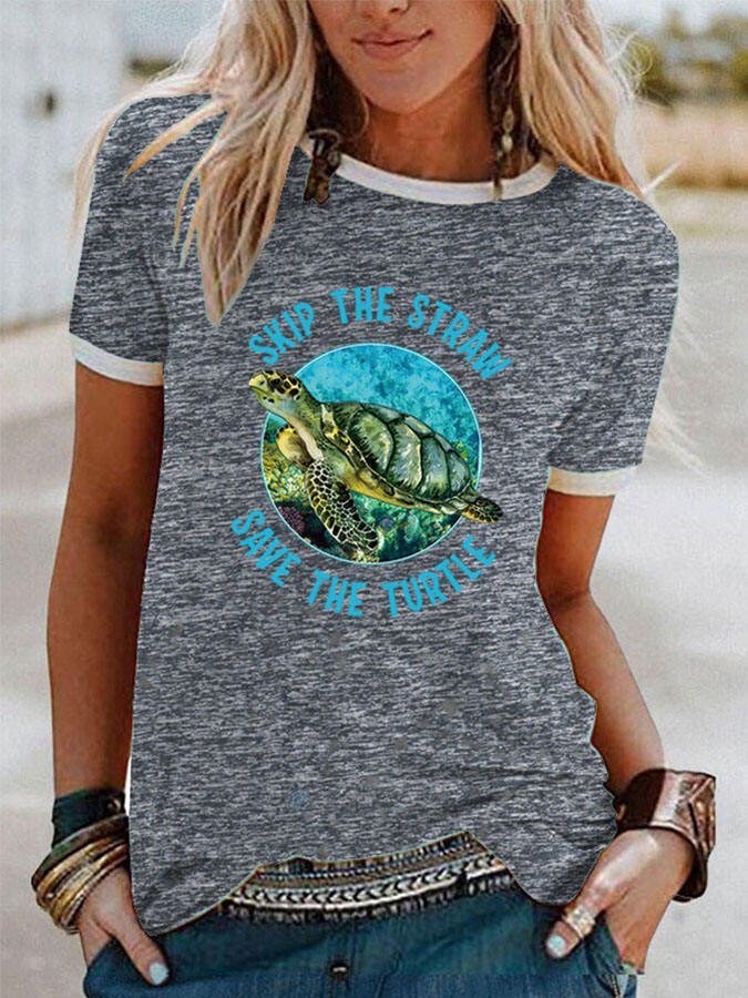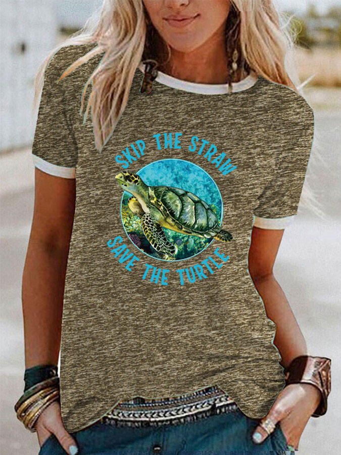 Casual Turtle Print Short Sleeve T-Shirt