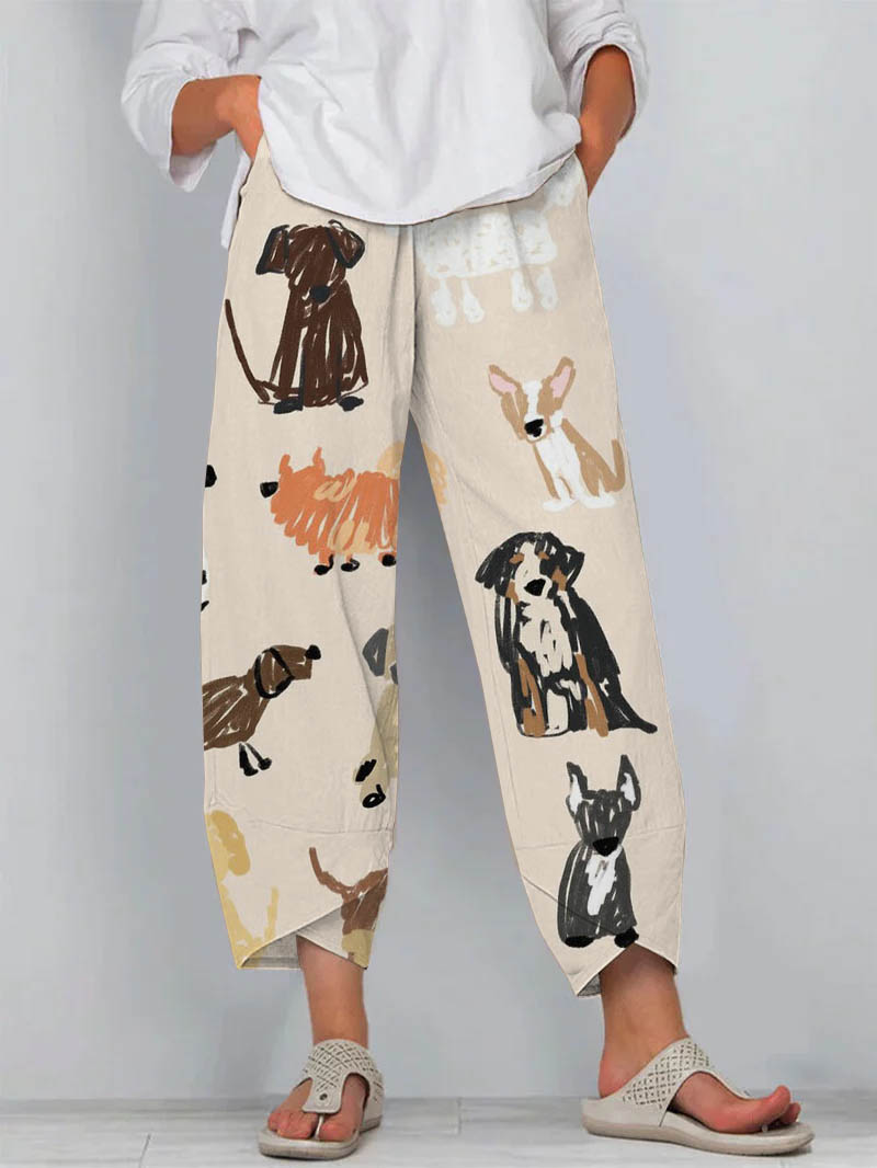 Cute and Funny Cartoon Puppy Print Cropped Pants