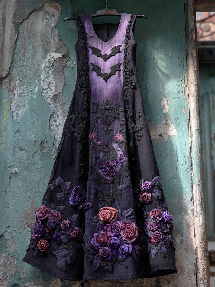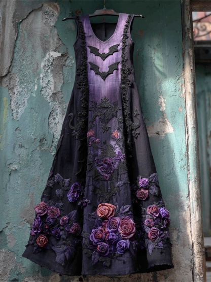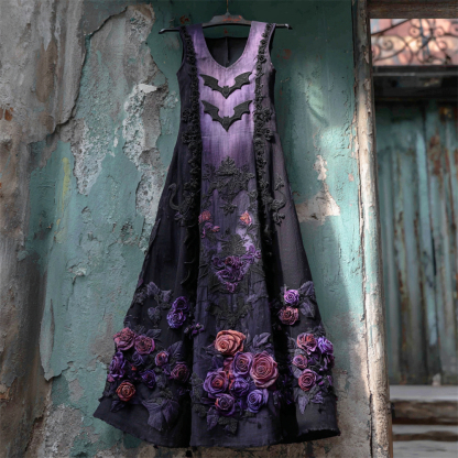 Halloween Bat & Dark Rose Gradient Women's Vest Midi Dress