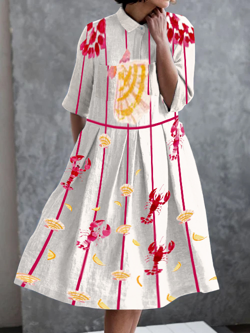 Holiday Ocean Shrimp Art Print Casual Pocket Half Sleeve Dress