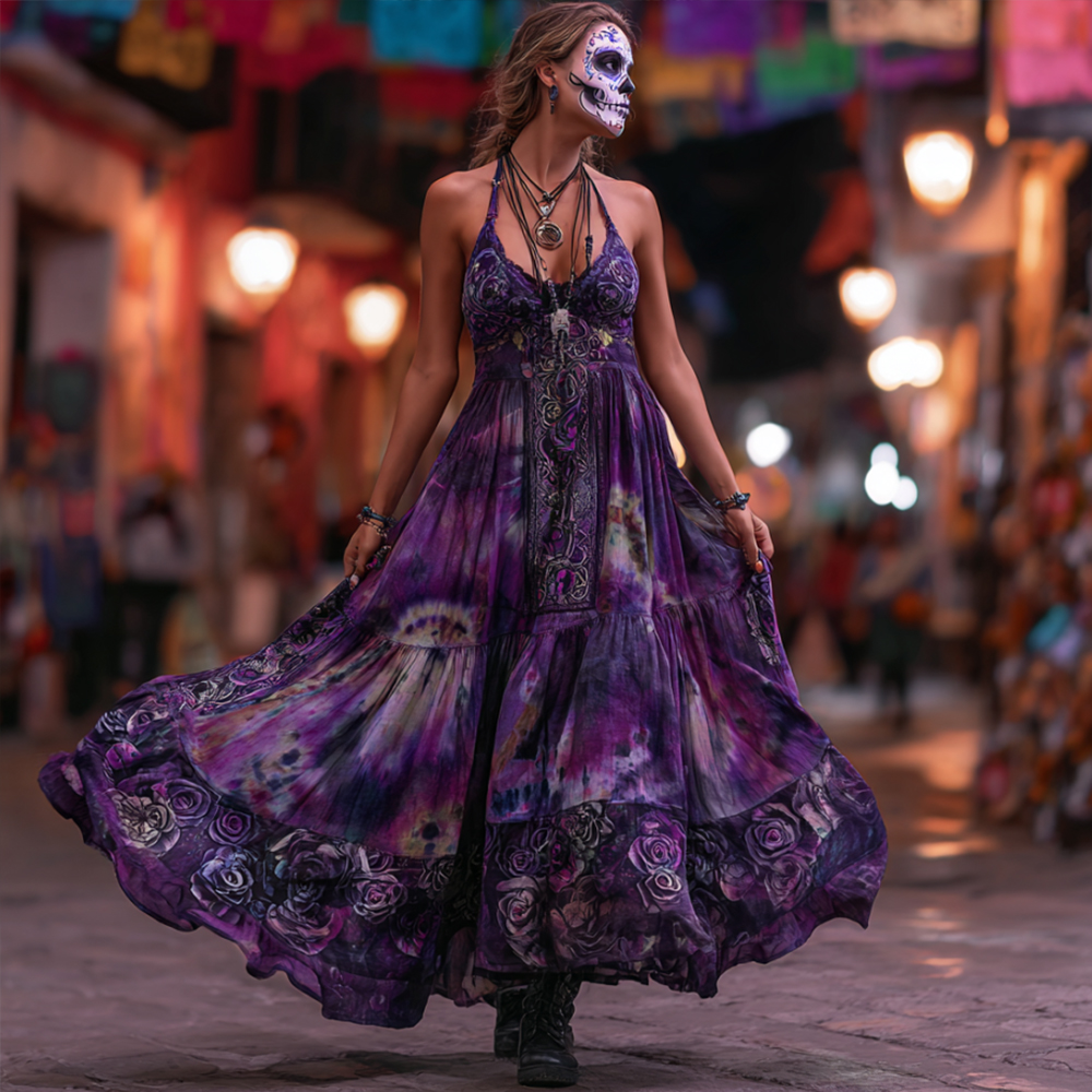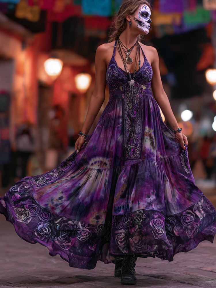 Ladies' Ethnic Pattern Vintage Style Long Dress With Straps