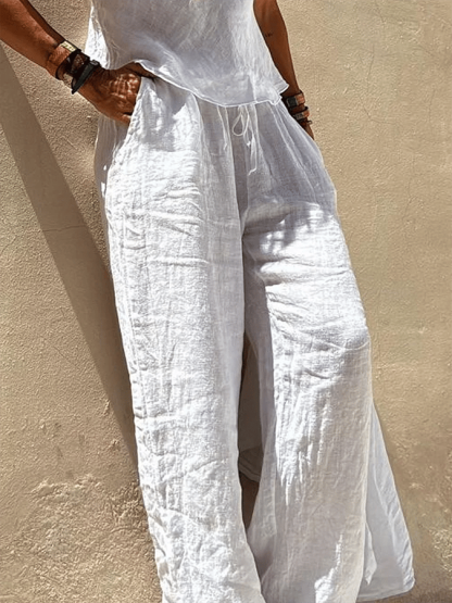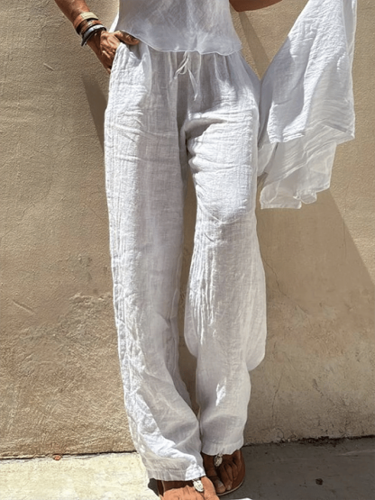 Ladies Pocket Patchwork Loose Cotton And Linen Casual Pants