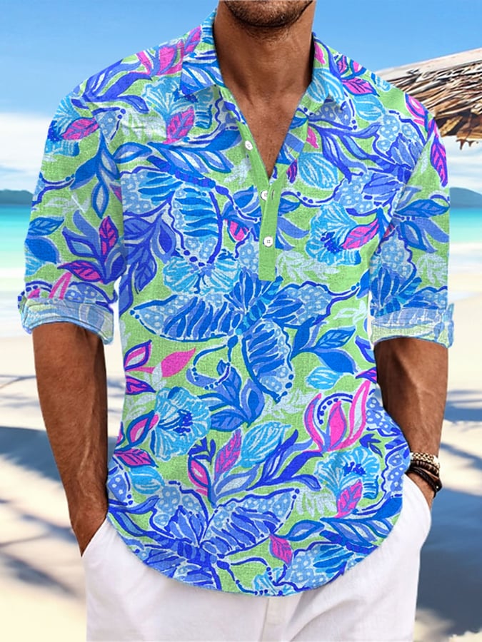 Men's Casual Hawaiian Print Stand Collar Shirt