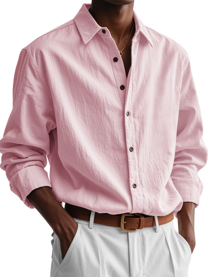 Men's Fashion Casual Pleated Fabric Long Sleeve Shirt