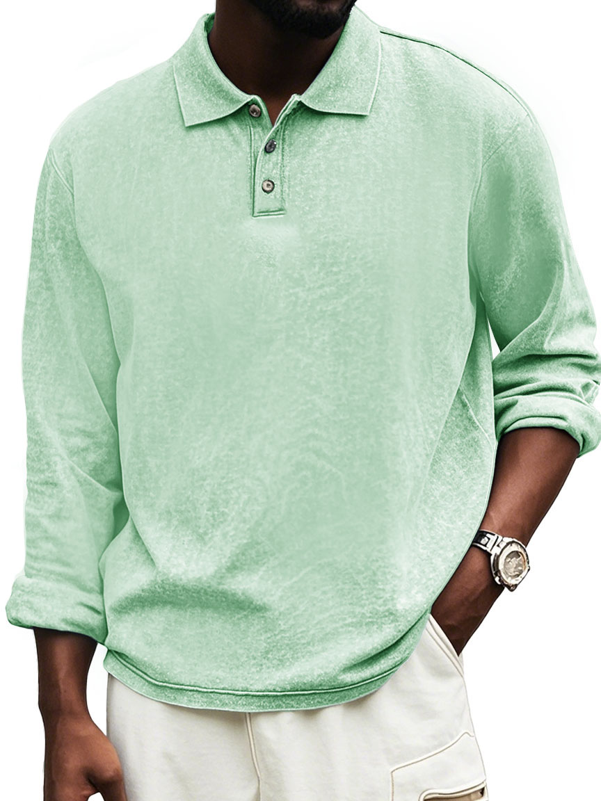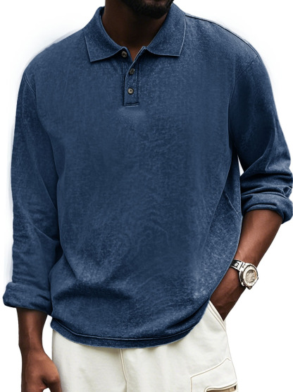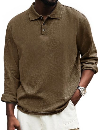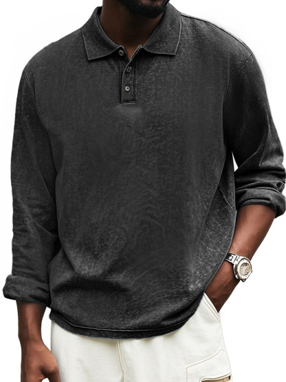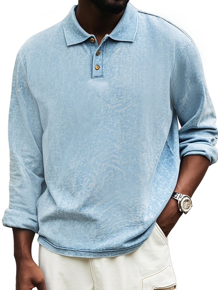 Men's Fashion Vintage Distressed Lapel Long Sleeve Polo Shirt