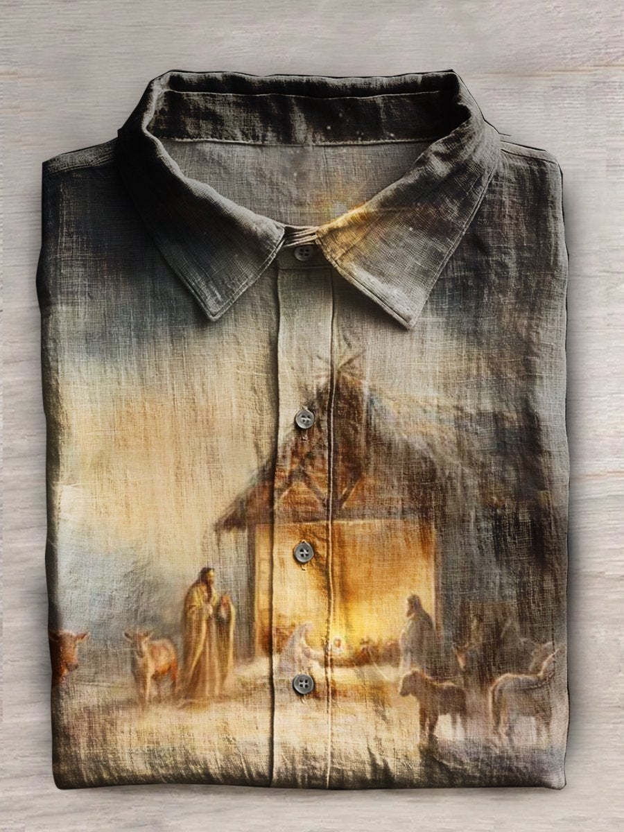 Nativity Print Casual Cotton Shirt