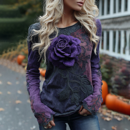 Vintage Halloween Purple Rose Art Linen Shirt