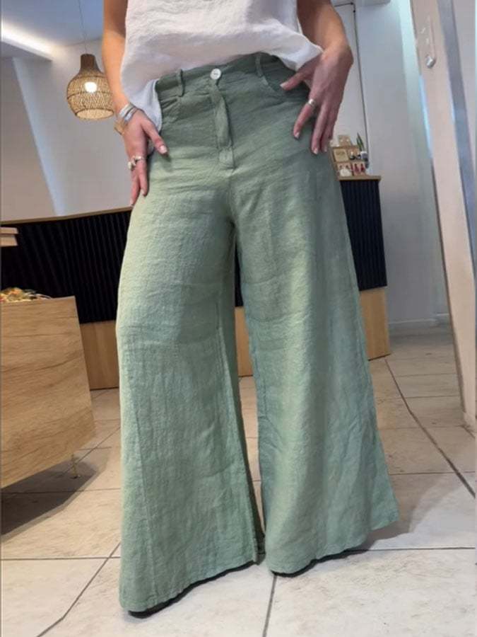 Women's Casual Solid Color Cotton and Linen Trousers
