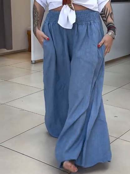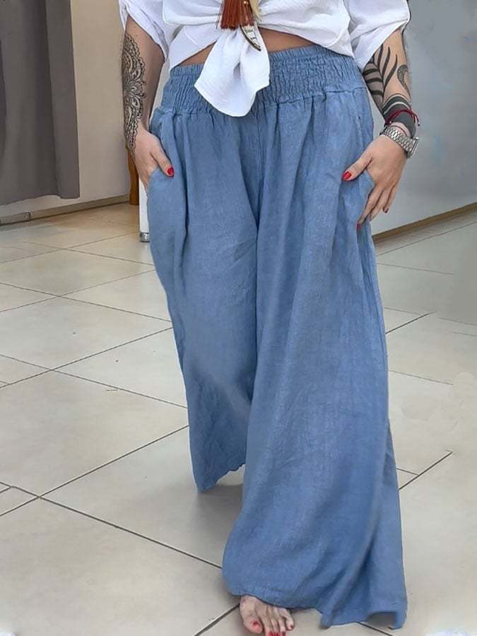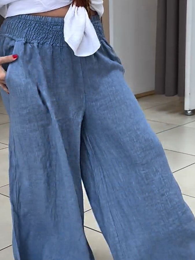 Women's Casual Solid Color Cotton and Linen Wide Leg Pants