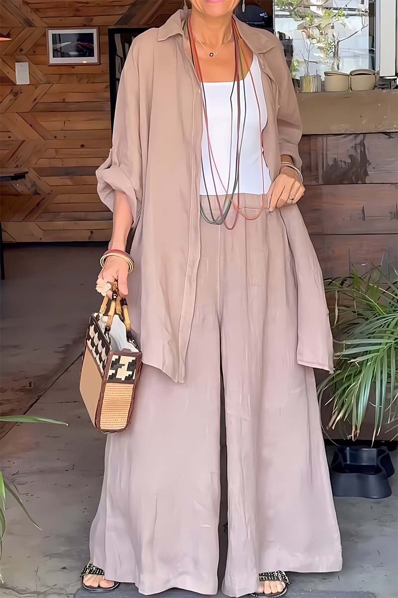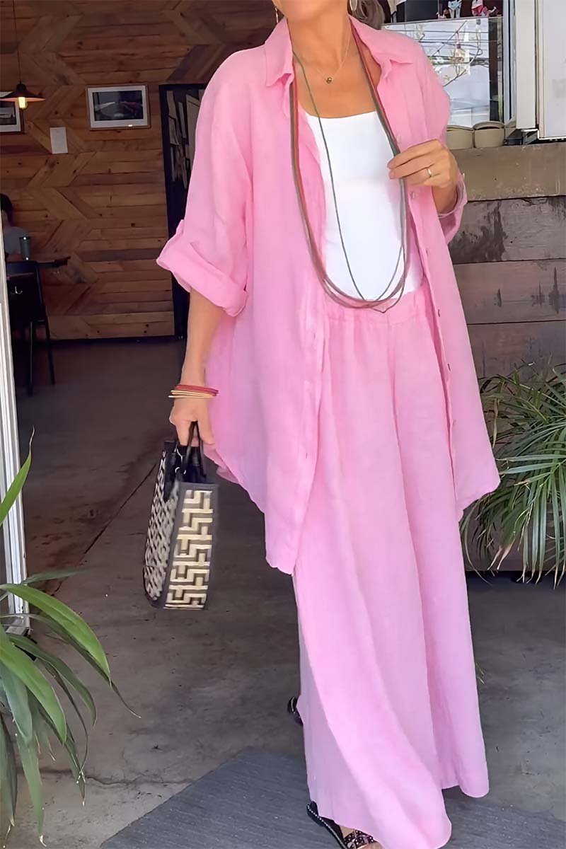 Women's casual solid color loose cotton and linen two-piece set