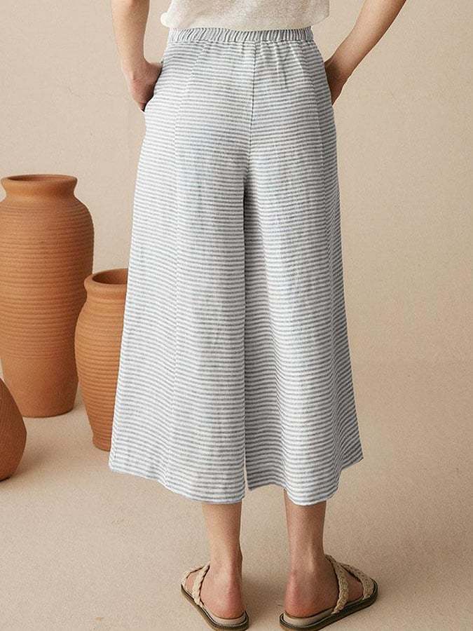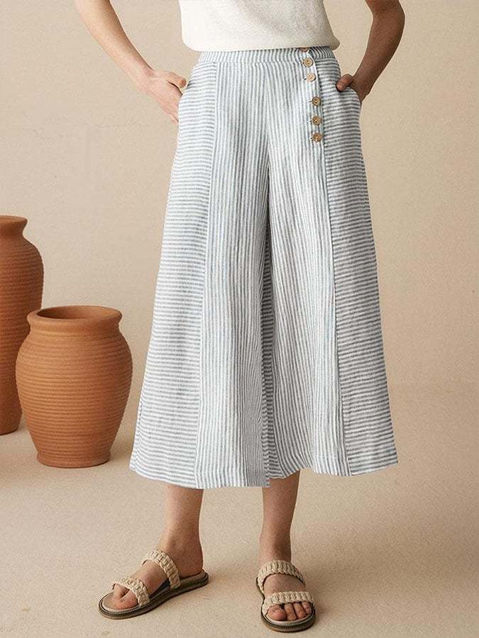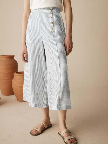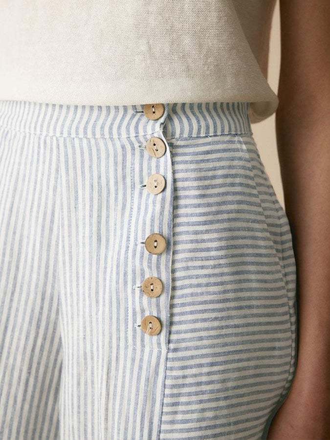 Women's Casual Stripe Print Button-Down Wide Leg Pants