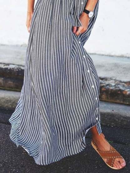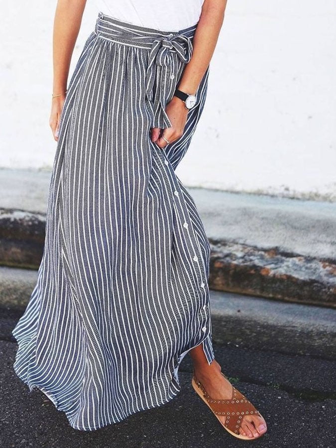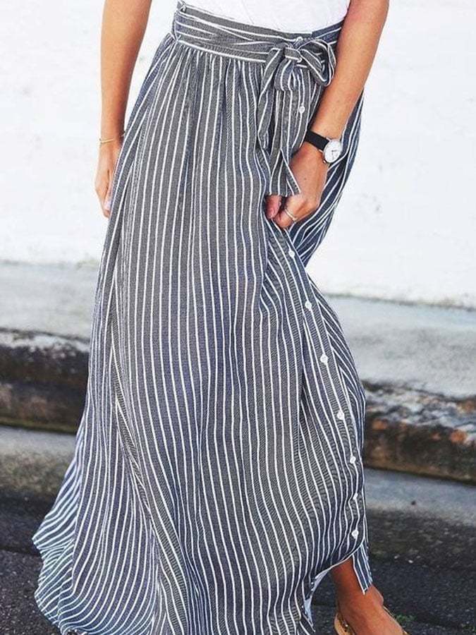 Women's Casual Striped Printed A-Line Cotton and Linen Skirt