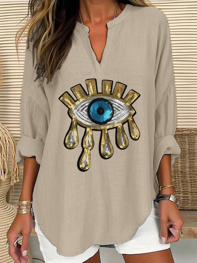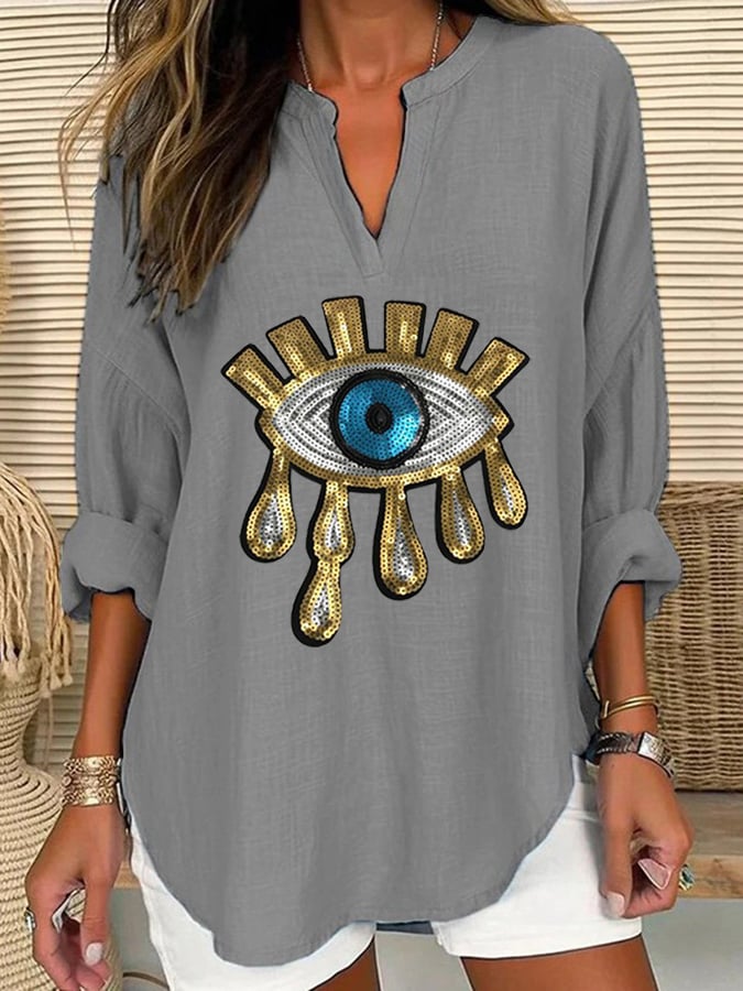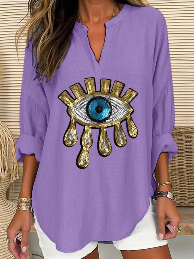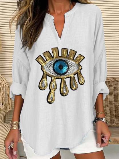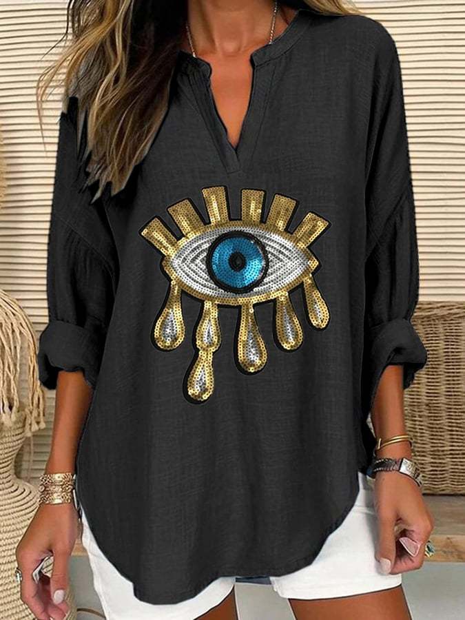 Women's Devil's Eye Casual Long Sleeve V-Neck Shirt